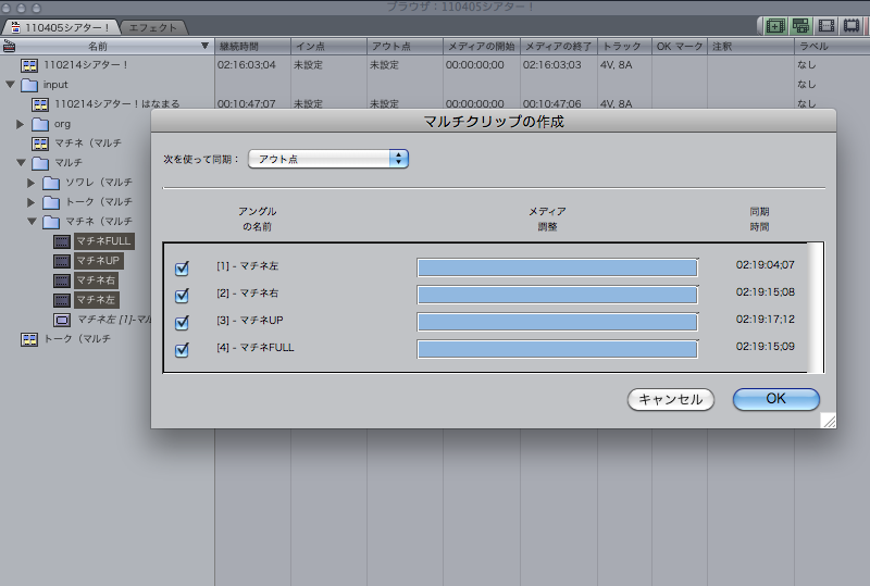 何故か同期がとれない4カメのタイムライン